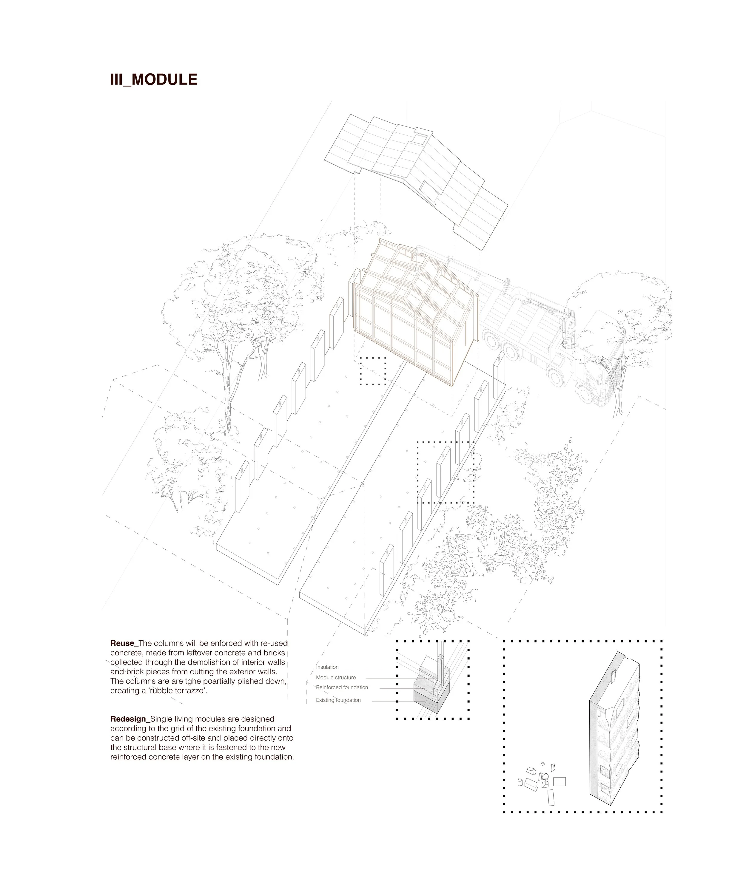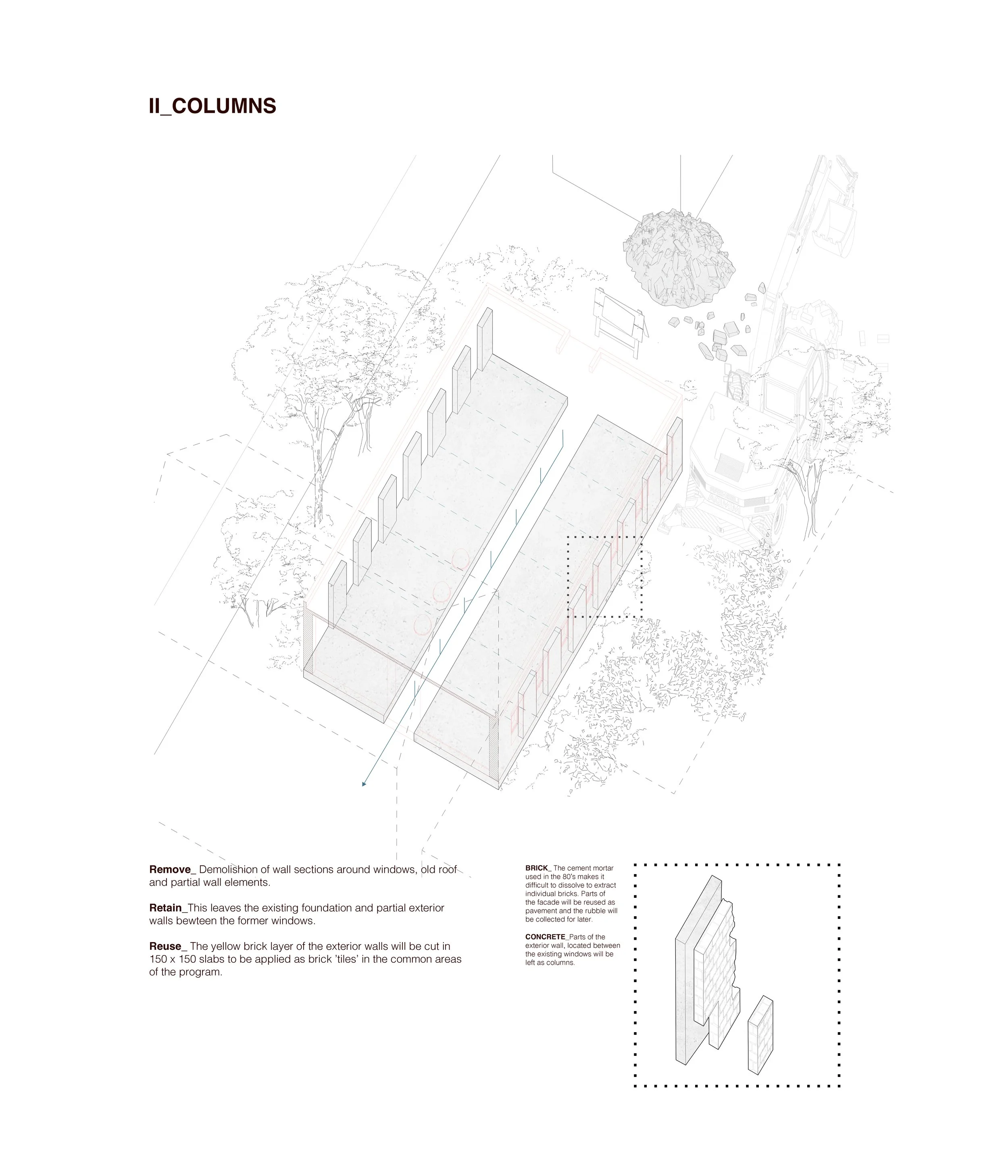 Centralt i designet står forholdet mellem gammelt og nyt. Den eksisterende struktur er tænkt nøje ind i det nye program, hvilket bevarer bygningens historie samtidig med, at moderne elementer introduceres for at opfylde nutidens behov for mental sundhedsbehandling. Denne dialog mellem fortid og nutid spejler helingsprocessen, hvor fortiden anerkendes, mens der skabes plads til nye begyndelser.