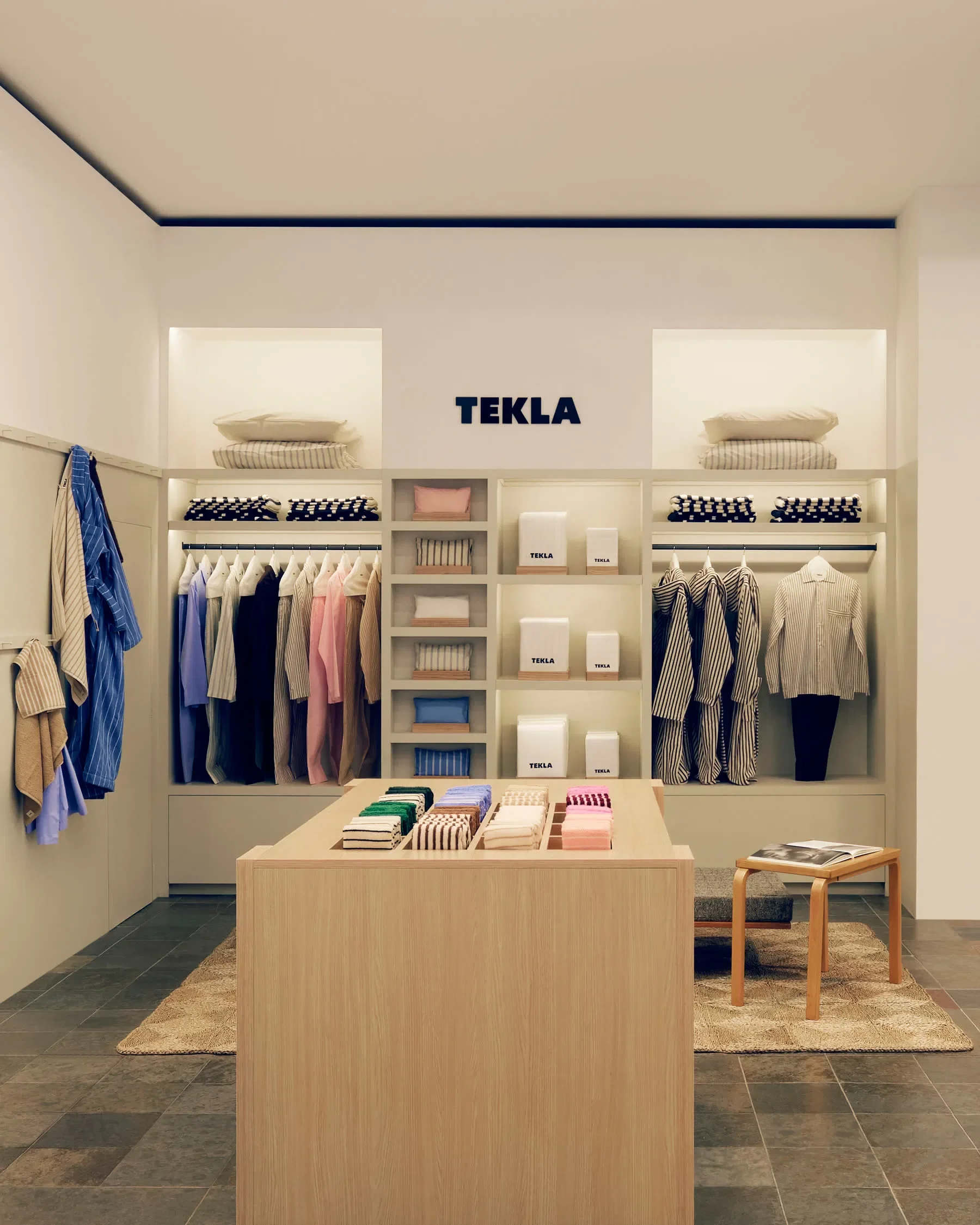 Alle rettigheder tilhører Tekla. I samarbejde med Teklas design team udviklede vi Teklas første lokation i London, i Selfridges. Designet understreger Teklas identitet ved at inkorporere velkendte hjemlige elementer. Rummet er defineret af en skræddersyet farvepalet og møbler desginet til placeringen, som tilsammen danner den atmosfære, der samtidig afspejler mærkets værdier, om kvalitet og enkelthed.